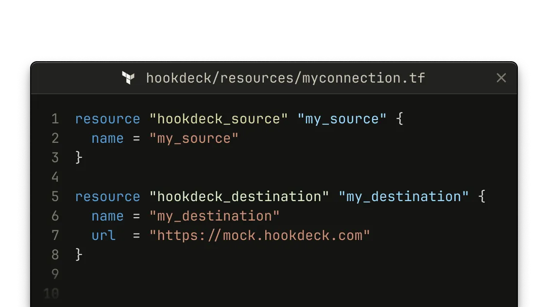 Define Hookdeck configs as code using the API or Terraform for automation and easy integration.